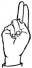 На ћирилици написано ИСИДОРА КЛИНЦОВ састоји се из 14 слова [?]. Исписано ћириличном једноручном азбуком за глувонеме: